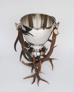Champagnerkübel auf Rothirschgestell mit seitlichen Pferdeköpfen.