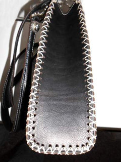 Ledertasche mit Kuhfell schwarz / weiss und schöner Silberschnalle.
