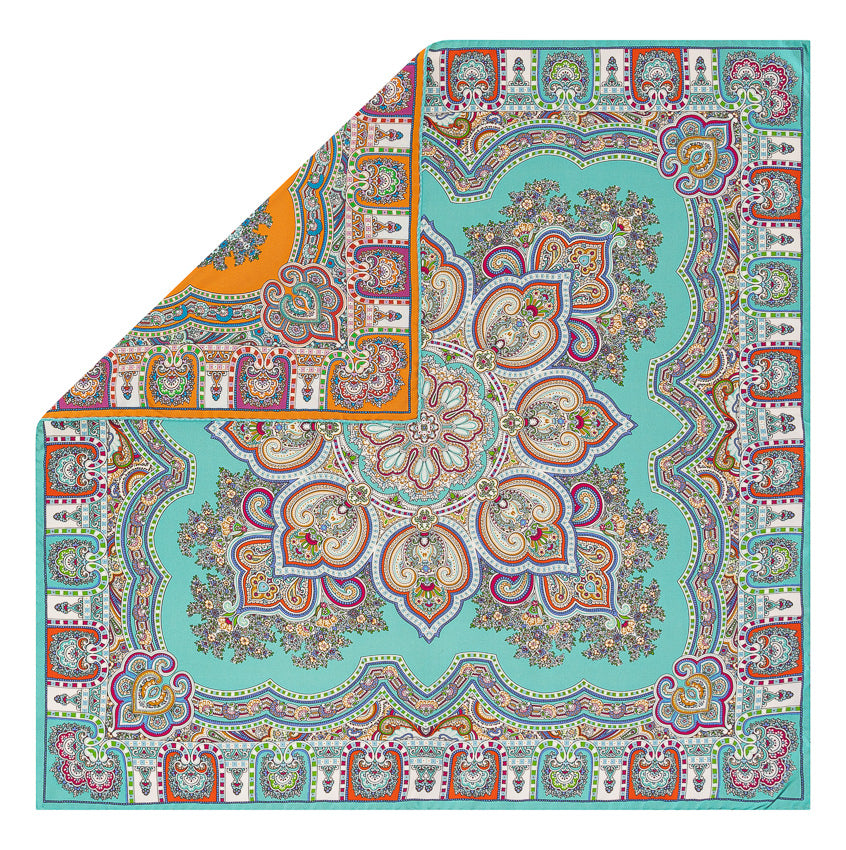Seidentuch in der Farbe Aqua - Terracotta